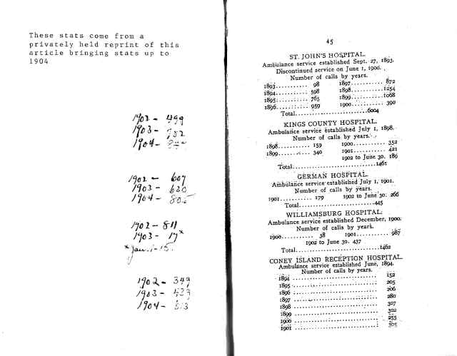 Ambulances at Kings County Hospital, Coney Island Hospital, and Homeopathic Hospital are owned, maintained and operated by the Department of Public Charities.