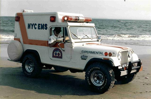 New York City EMS field tested this vehicle for use on the Coney Island, Rockaway and Orchard Beach recreational areas, but did not purchase. The Jeep proved too small, with limited ability for airway control or CPR, and were not purchased.